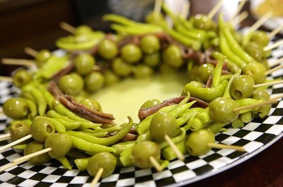 If you love the atmosphere of a cocktail party, glass in one hand, a tiny delicate morsel in the other as you mingle informally, then you are going to adore taking Pintxos (pronounced 'pinchos'). These are small, mouth-watering snacks, similar to tapas (TIP - do not mention tapas in the Basque region) often eaten as an appetizer with a small glass of young white wine, Basque cider or beer. They are a cornerstone of Basque life, as they are normally eaten with friends or family. While the recipes are based on traditional Basque cuisine, they now blend with the philosophy of 'microcuisine' – carefully sculpted small dishes with the freshest and most flavoursome ingredients. The traditional 'skewered' snacks (the meaning of 'pintxos') include a delicious range of toppings: from hot peppers, olives and potato omelette to cod and anchovies, sometimes served on a small wedge of bread (you'll also see other clever methods to of serving them). In San Sebastian, seafood is the speciality (especially mussels, cod and anchovies) you won't find more fabulous pintxos, than in the old town - Parte Vieja. Here are just a few possible combinations:
